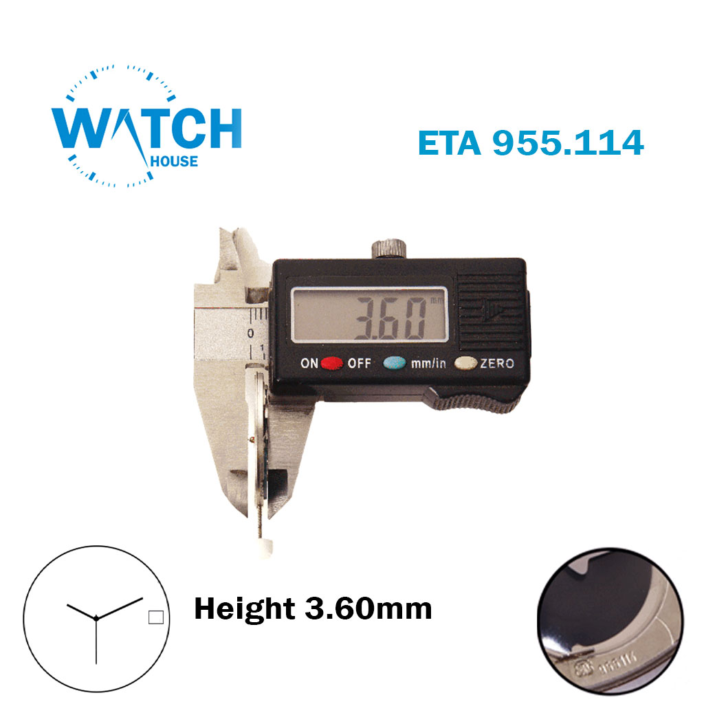 حركة كوارتز سويسرية الصنع ETA 955.114، قرص التاريخ الأبيض عند 3، 3 عقارب، الارتفاع 1.