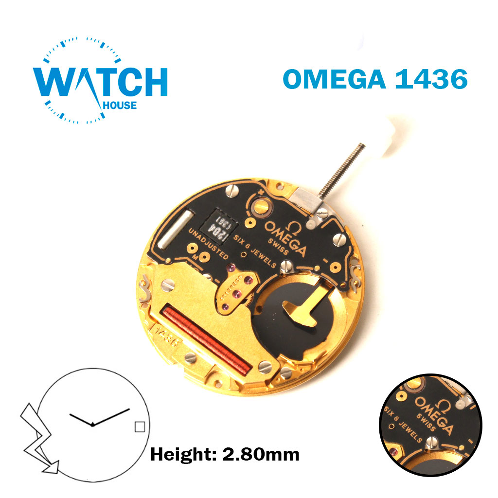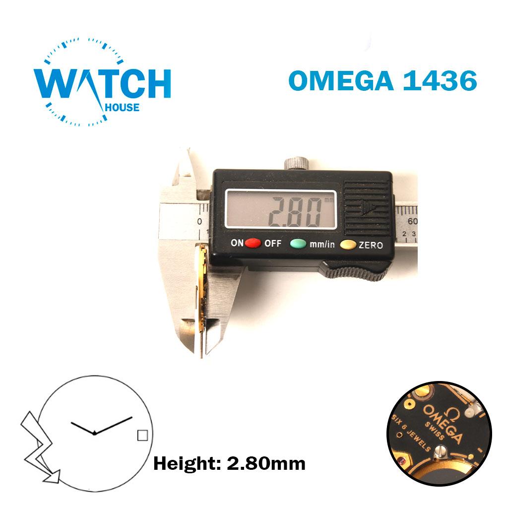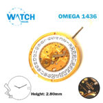 حركة ساعة أوميغا السويسرية ETA 1436، قرص التاريخ الأبيض عند الساعة 3، عقربان، الارتفاع 2:80 مم.