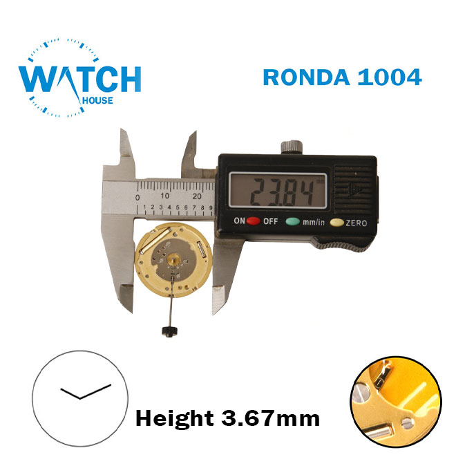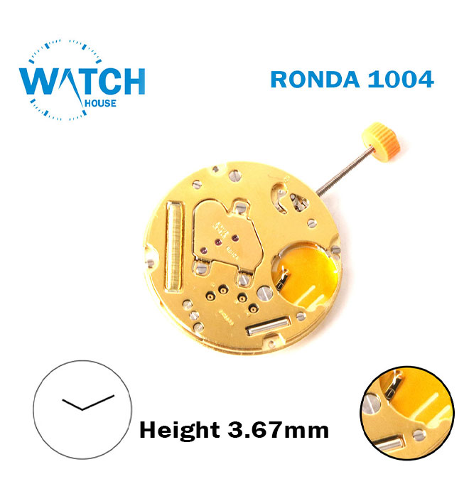 حركة ساعة روندا 1004 كوارتز سويسرية – 2 يد، مطلية بالذهب – NOS.