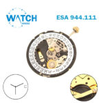 حركة ساعة سويسرية الصنع ESA 944.111، قرص التاريخ الأبيض عند الساعة 3، 3 عقارب، بدون عجلة الساعات.