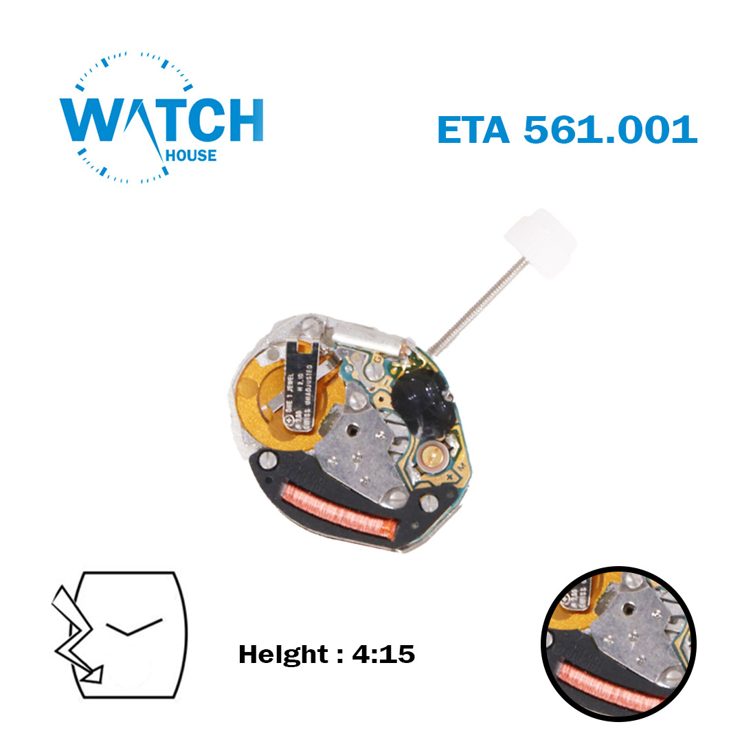 ETA 561.001 حركة ساعة سويسرية الصنع، عقارب، الارتفاع (4:15) .