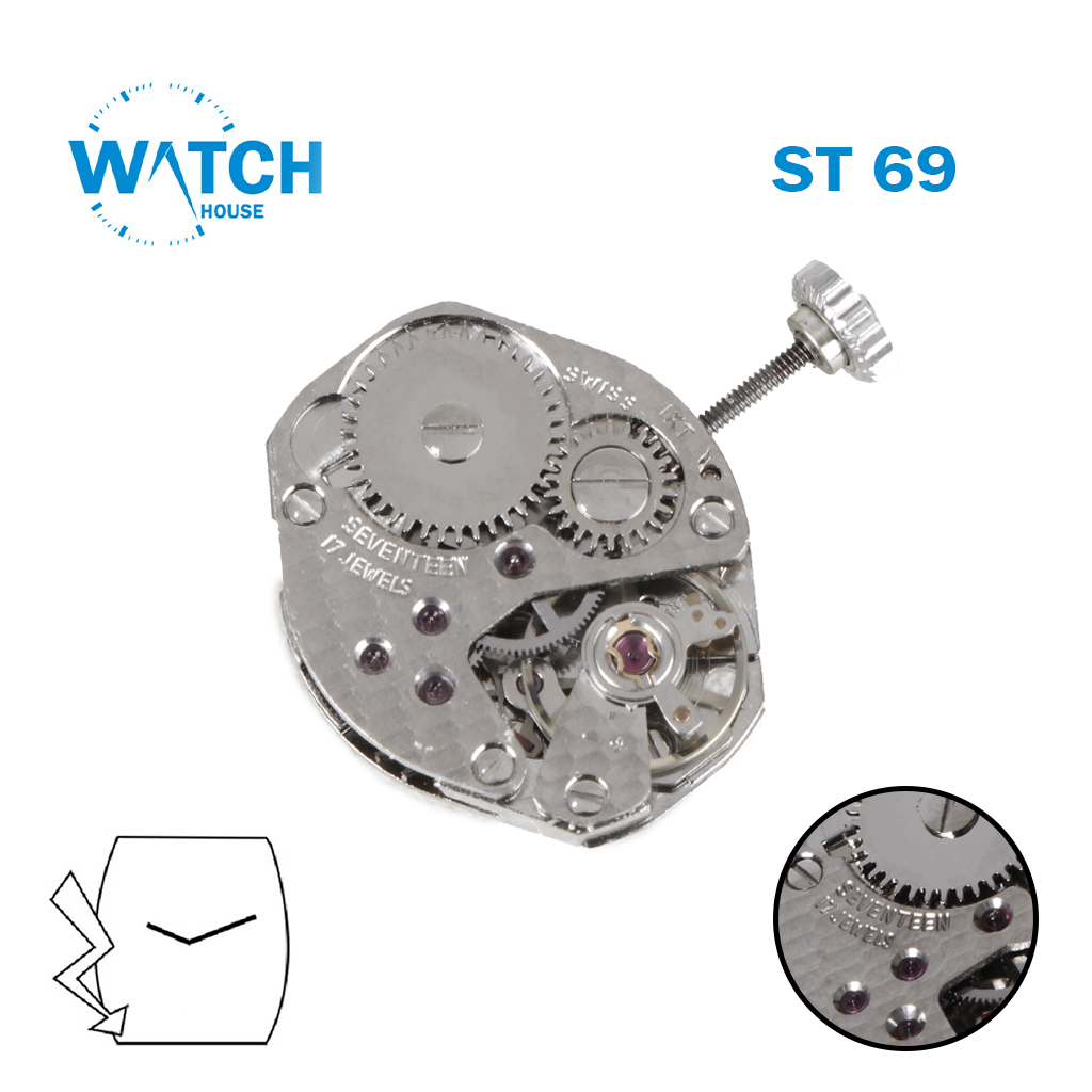حركة ST 69 حركة يدوية، مطلية بالفضة.