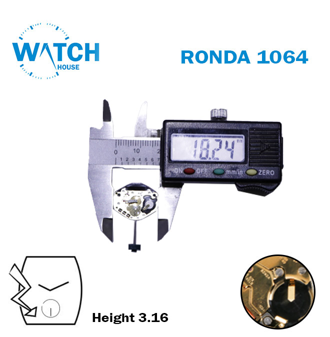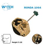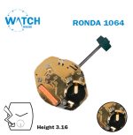 حركة كوارتز روندا 1064 سويسرية الصنع، عقارب، ثانية صغيرة عند 6، بدون قرص، 6 جواهر.