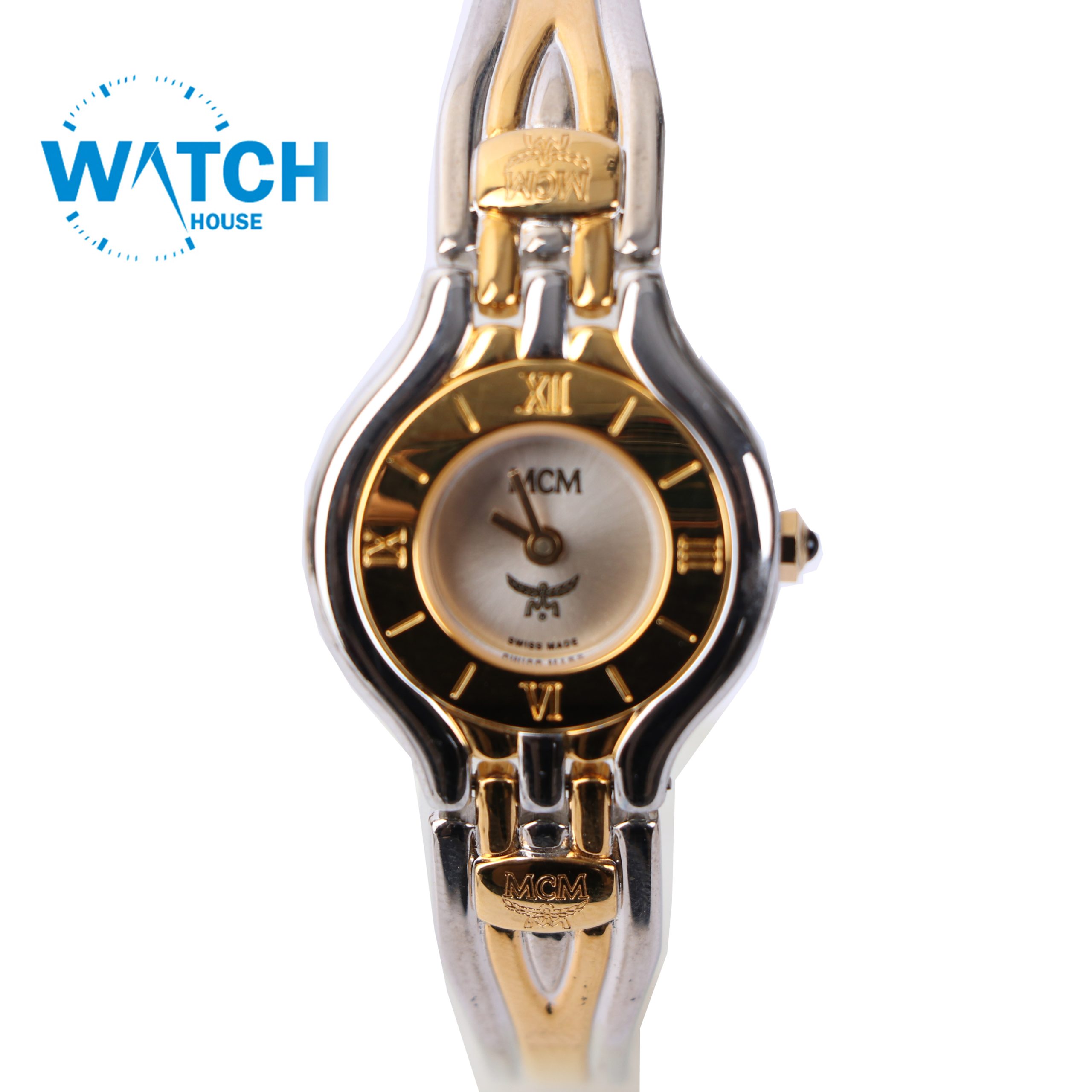 ساعه إم سي إم يد نسائيه، صناعه سويسريه، استانلس ستيل، فضي و ذهبي اللون.