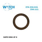 قرص التاريخ لـ ETA 256.041 أو 256.111 حركة سويسرية، قرص تاريخ أسود عند 6، رقم ذهبي.