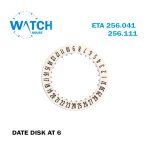 قرص التاريخ لحركة سويسرية ETA 256.041 أو 256.111، قرص تاريخ أبيض عند 6.