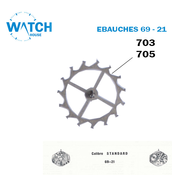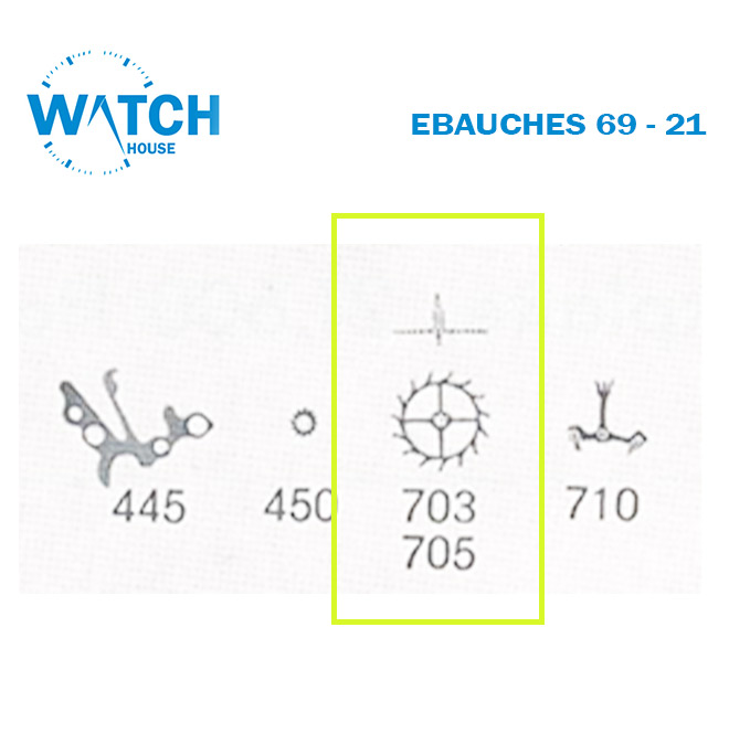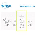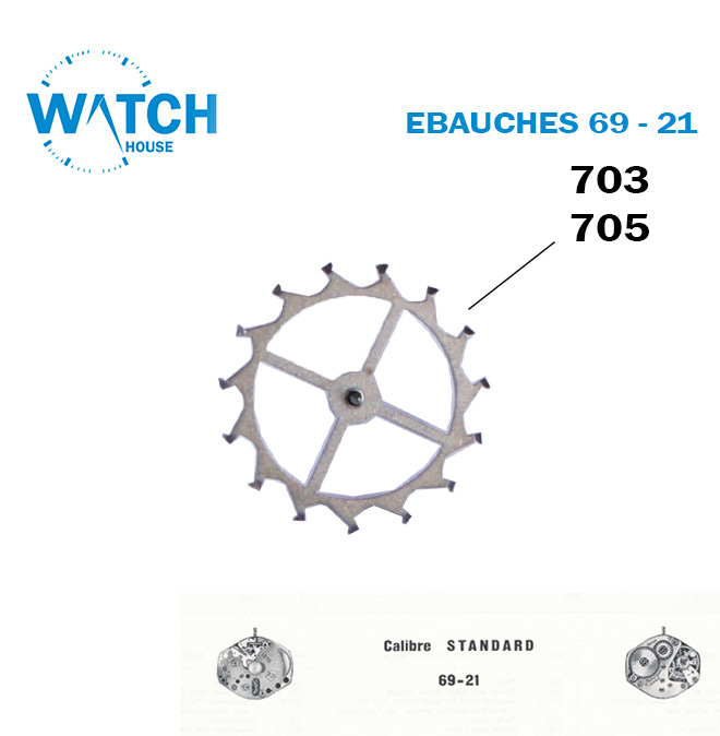 عجلة الهروب، لقطعتين نهائيتين، حركة سويسرية، رقم القطعة (703 – 705)، CAL EBAUCHES 69-21، لون فضي.