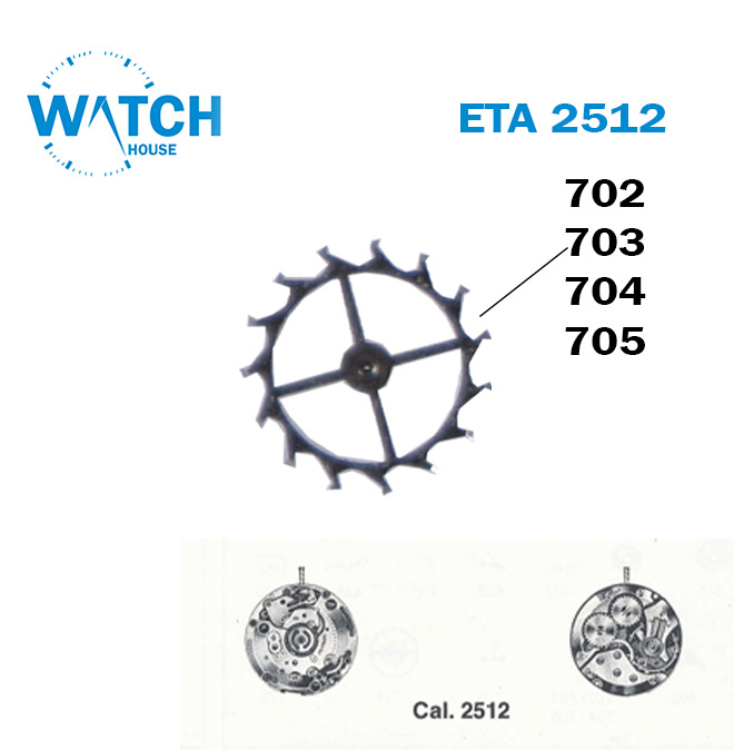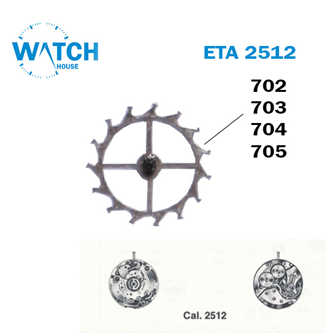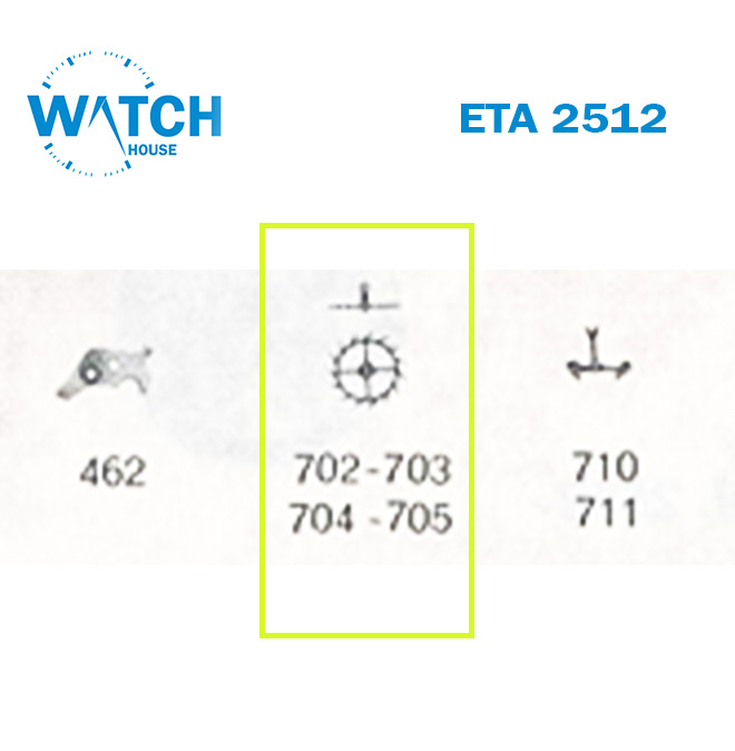 قطع الغيار Esc. العجلة والترس، رقم الجزء السفلي للحركة السويسرية (702,703,704,705)، CAL ETA 2512، لون فضي.
