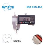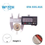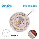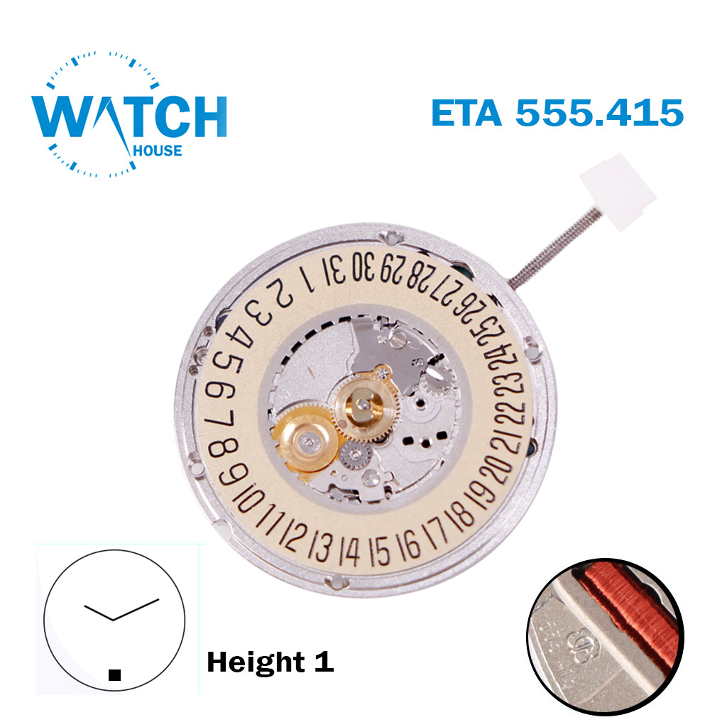 حركة ساعة ETA 555.415 سويسرية الصنع، قرص تاريخ ذهبي عند 3، عقارب، الارتفاع 1.
