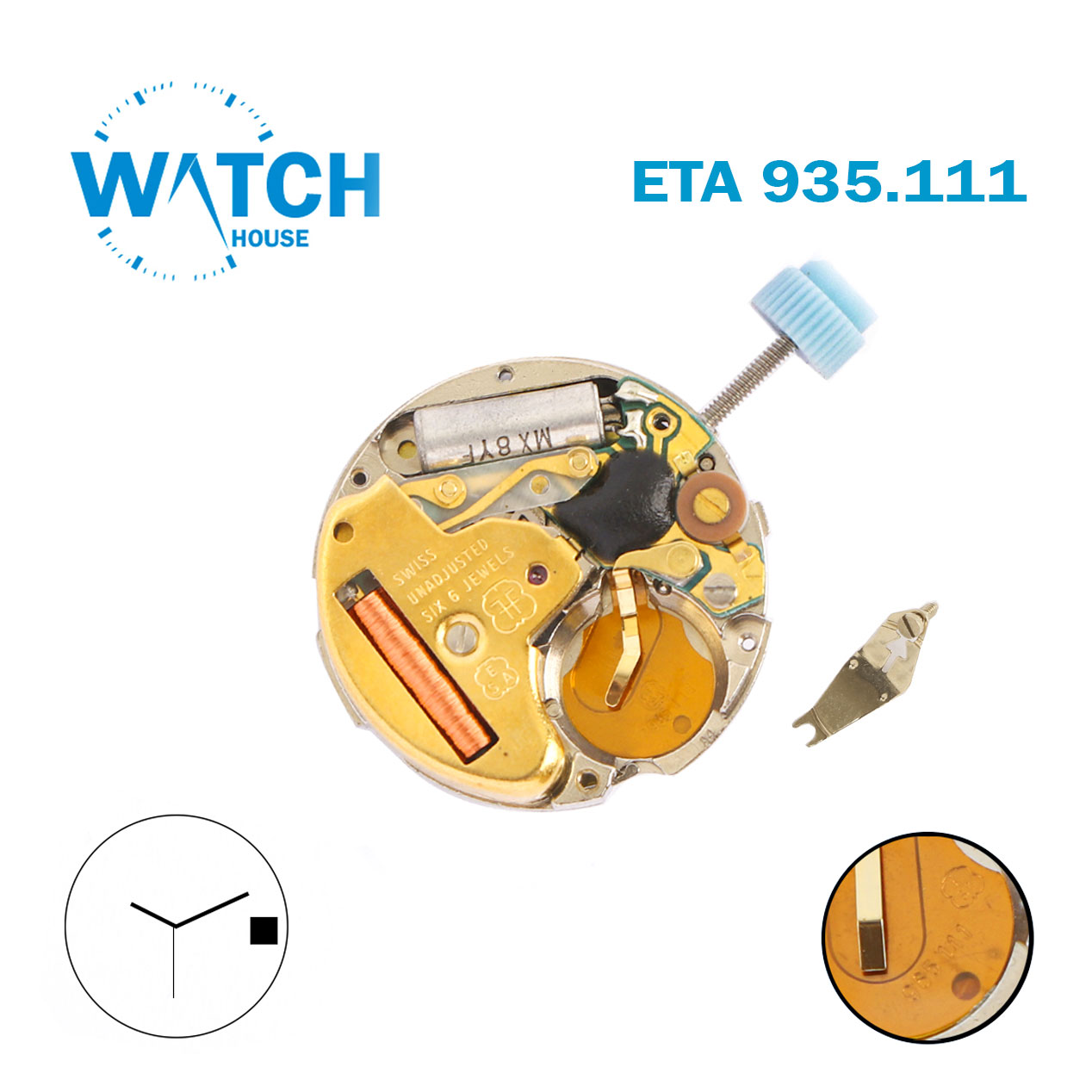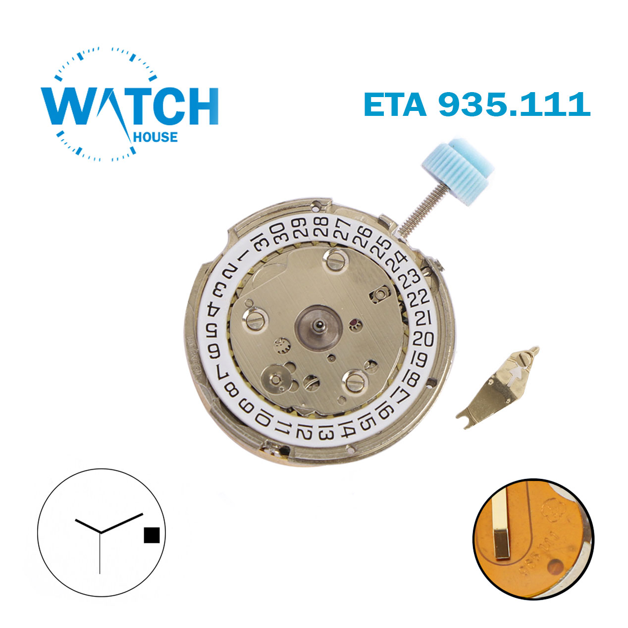 ساعة سويسرية الصنع ETA 935.111، حركة كوارتز، قرص تاريخ أبيض عند 3 عقارب.