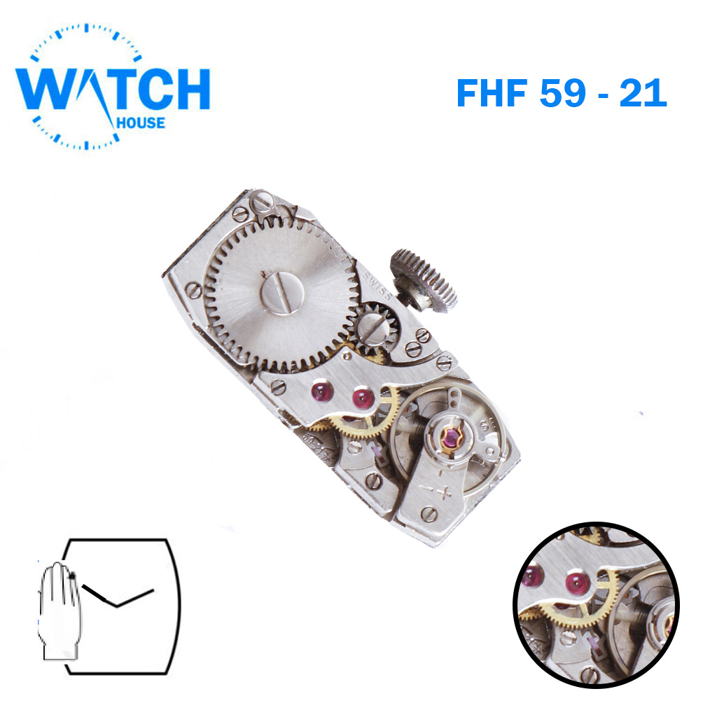 FHF 59 – 21 حركة سويسرية عتيقة يدوية، بدون قرص، لون فضي، 17 جوهرة.