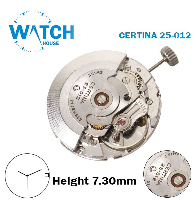 CERTINA 25-012 Swiss Made Quartz Movement, Automatic, White Date Disk at 3, 3 Hands, Height 7.30mm.