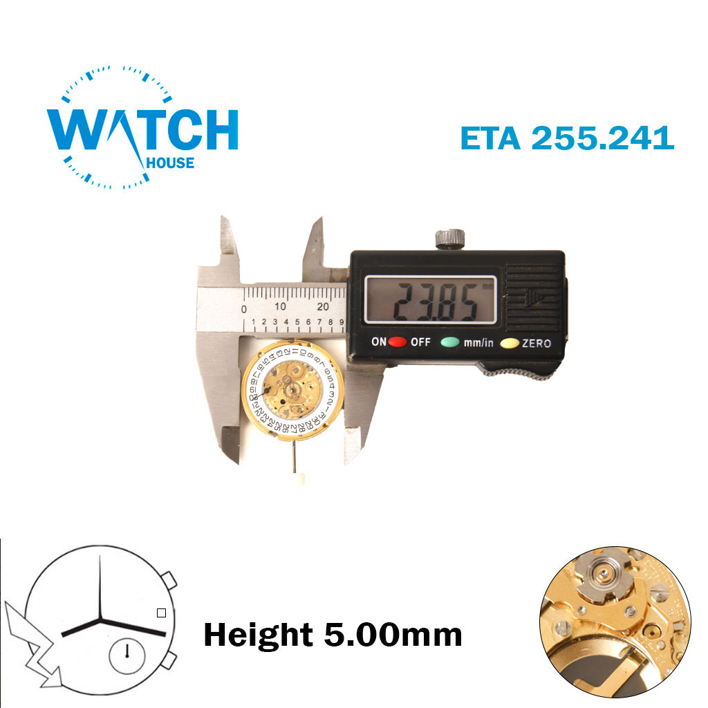ETA 255.241 Swiss Made Watch Movement, Without hour wheel,3 Hands, White Date Disk At 3, Height 5.00 mm .