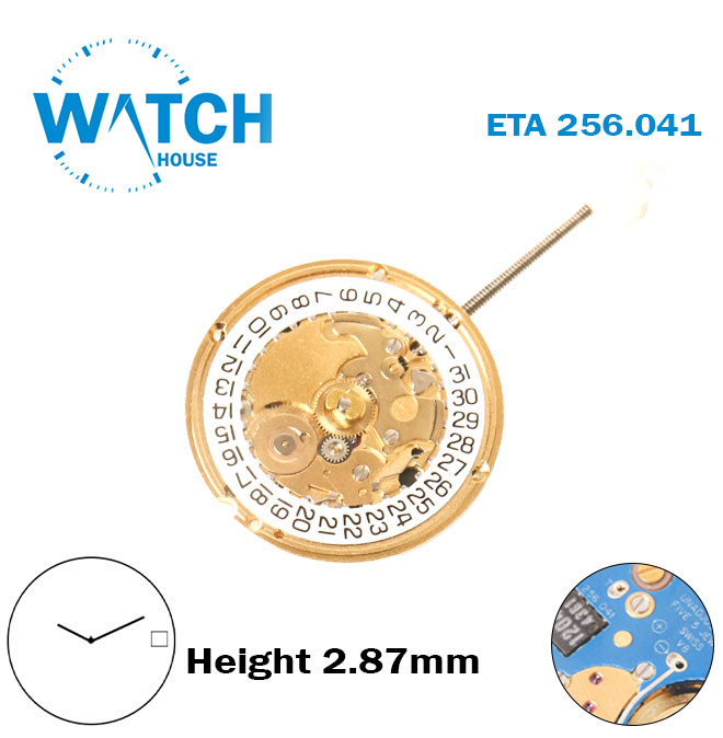 ETA 256.041 Swiss Watch Movement, White Date Disk At 3 , 2 Hands, Height 2.87 mm, Blue Circuit .