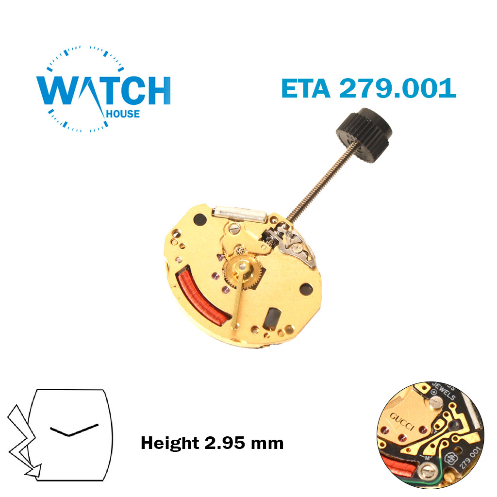 ETA 279.001 GUCCI Swiss Watch Movement, Height 2.95mm, Without Disk, 2Hands.