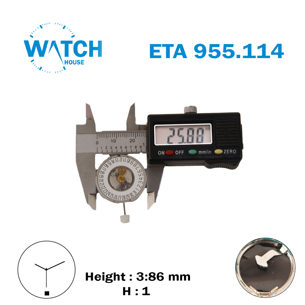 ETA 955.114 حركة كوارتز سويسرية الصنع، قرص تاريخ أبيض عند 6، 3 أيادي، ارتفاع 1.