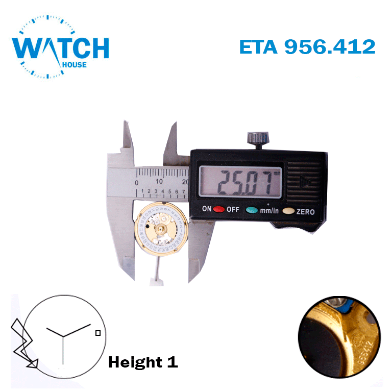 ايتا ماكينه ساعه سويسرية الصنع 3 ETA 956.412 عقرب ,النتيجه عند 3,ارتفاع1