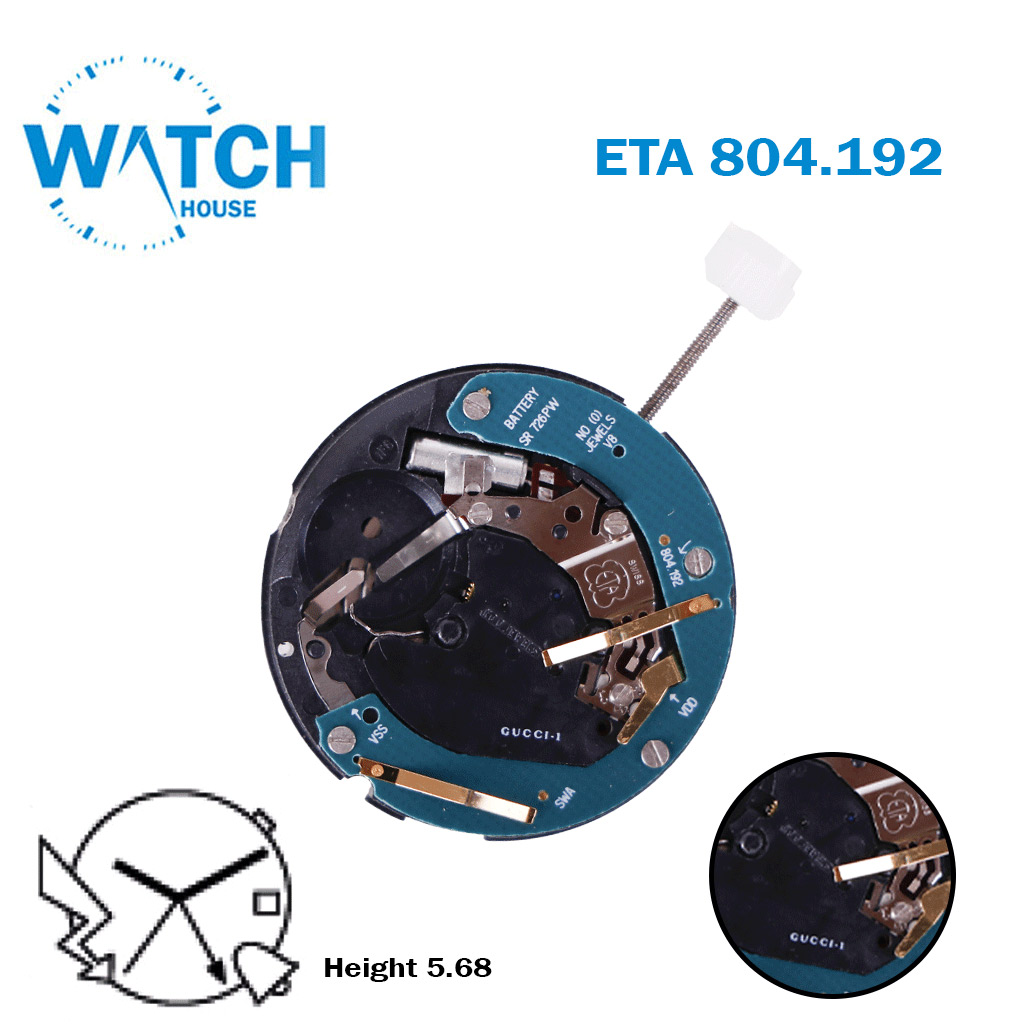 حركة كوارتز سويسرية الصنع ETA 804.192، تاريخ أبيض عند 6، 3 عقارب، بدون ساق واحد.
