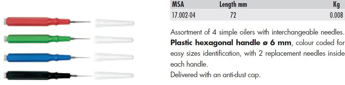 مجموعة زيوت بإبر قابلة للتبديل ومقبض بلاستيك هروتيك قطر 6 مم ، 4 قطع MSA17.002-04