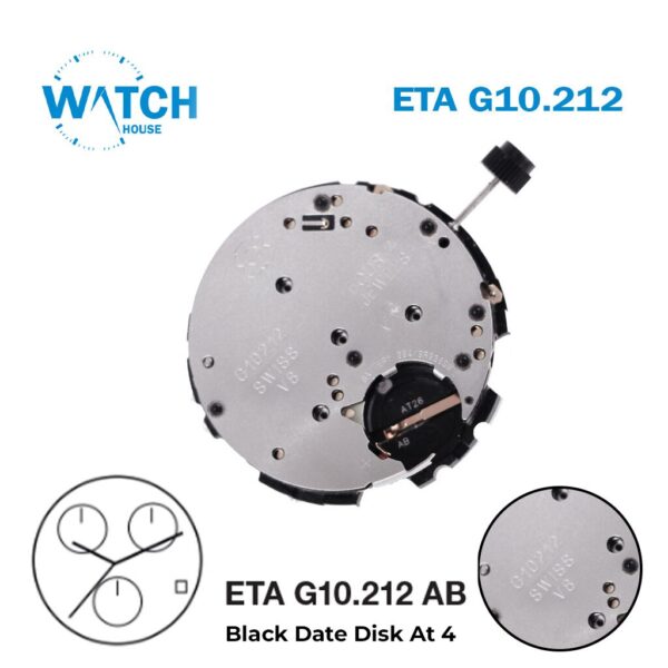 ETA G10.212 Swiss Made Watch Movement, Black Date Disk At 4. ( AB )