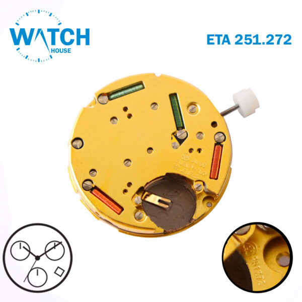 ETA 251.242 Swiss Made Watch Movement, White Date Disk At 6, 3 Hands .