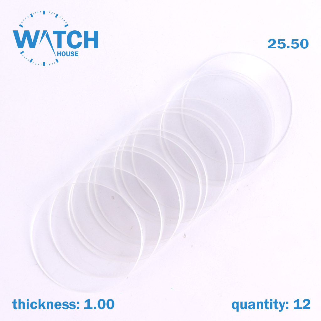 12 pcs watch glass crystal swiss made size 25.50 mm thickness is 1.00