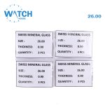 Be the first to review “12 pcs watch glass crystal swiss made size 26.00 mm thickness is 0.90 high quality” Cancel reply