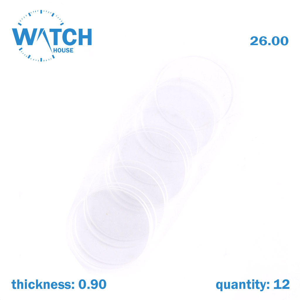 12 pcs watch glass crystal swiss made size 26.00 mm thickness is 0.90 high quality
