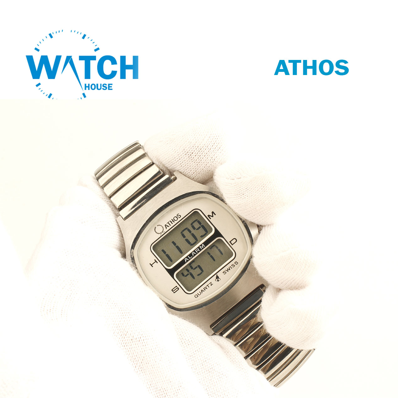 ATHOS Quartz SWISS?? Digital LCD Wristwatch Men’s Swiss Steel, Silver Bracelet.