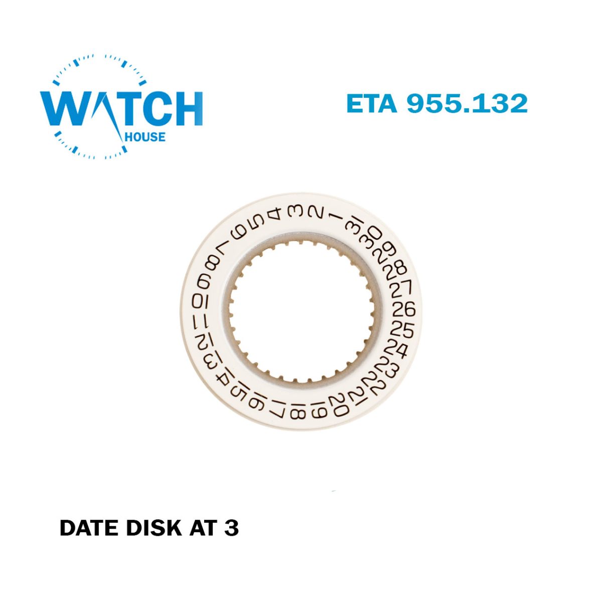 DATE Disk FOR Eta Swiss Movement 955.132, White Date Disk At 3.