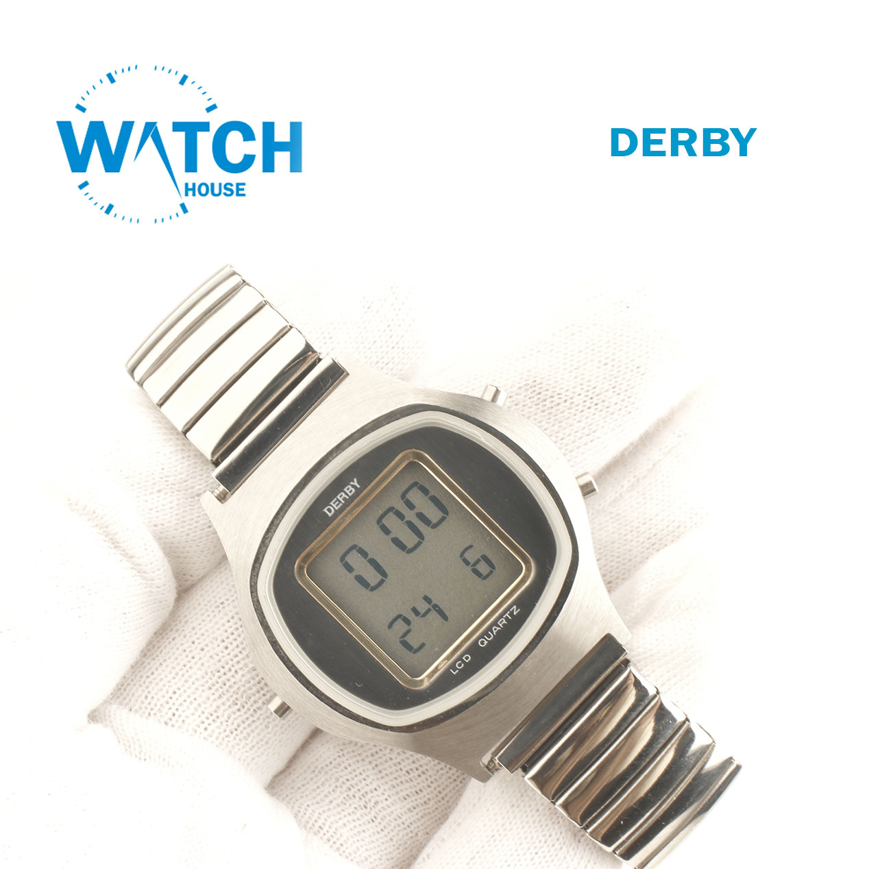 DERBY SWISS?? QUARTZ Digital LCD Wristwatch Men’s Swiss Steel, Silver Bracelet.