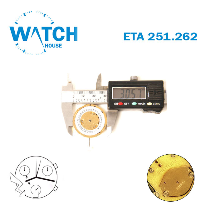 ETA 251.262 Breitling Swiss Made Quartz Movement, White Date Disk At 4, Choronograph .