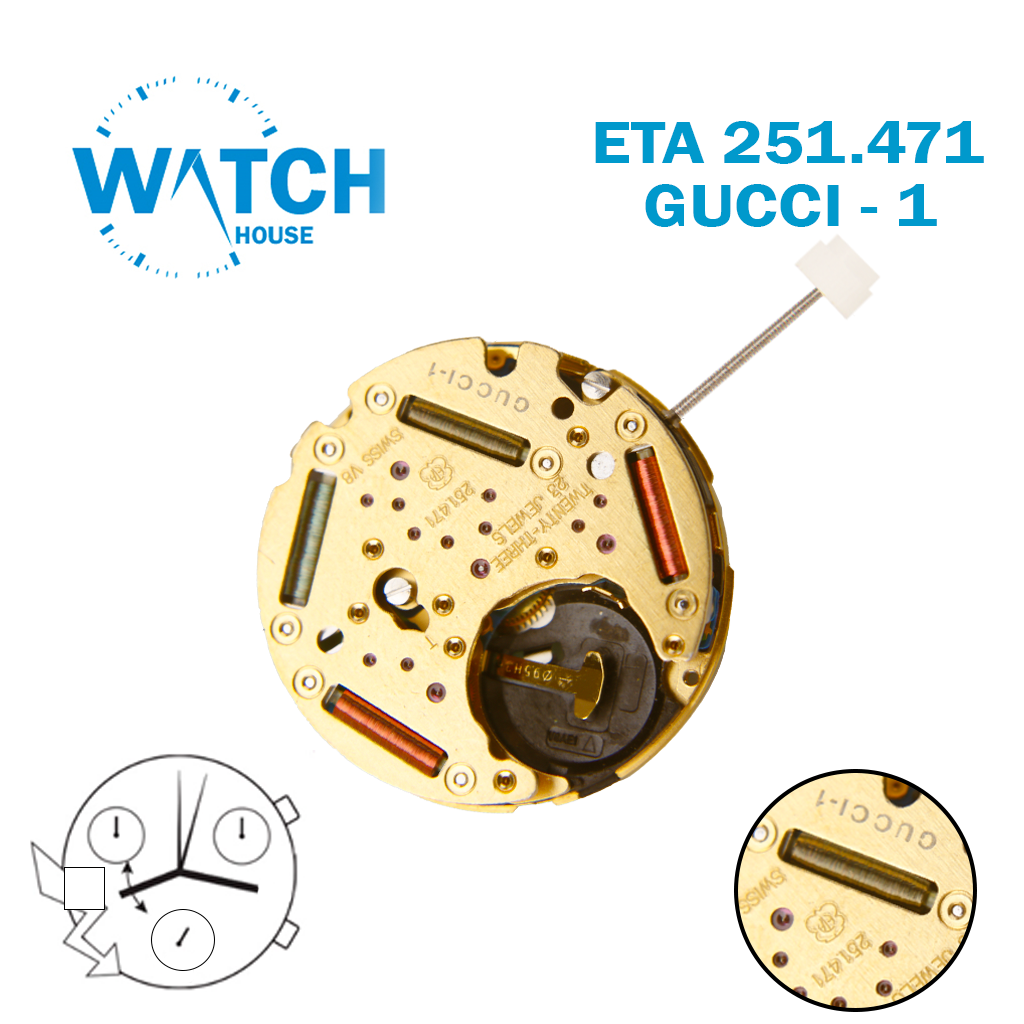 Be the first to review “ETA 251.471 GUCCI 1, Swiss Quartz Chronograph Watch Movement – White Date Disk at 9 -NOS-, Height 6:88 mm, { 3 Conter }”