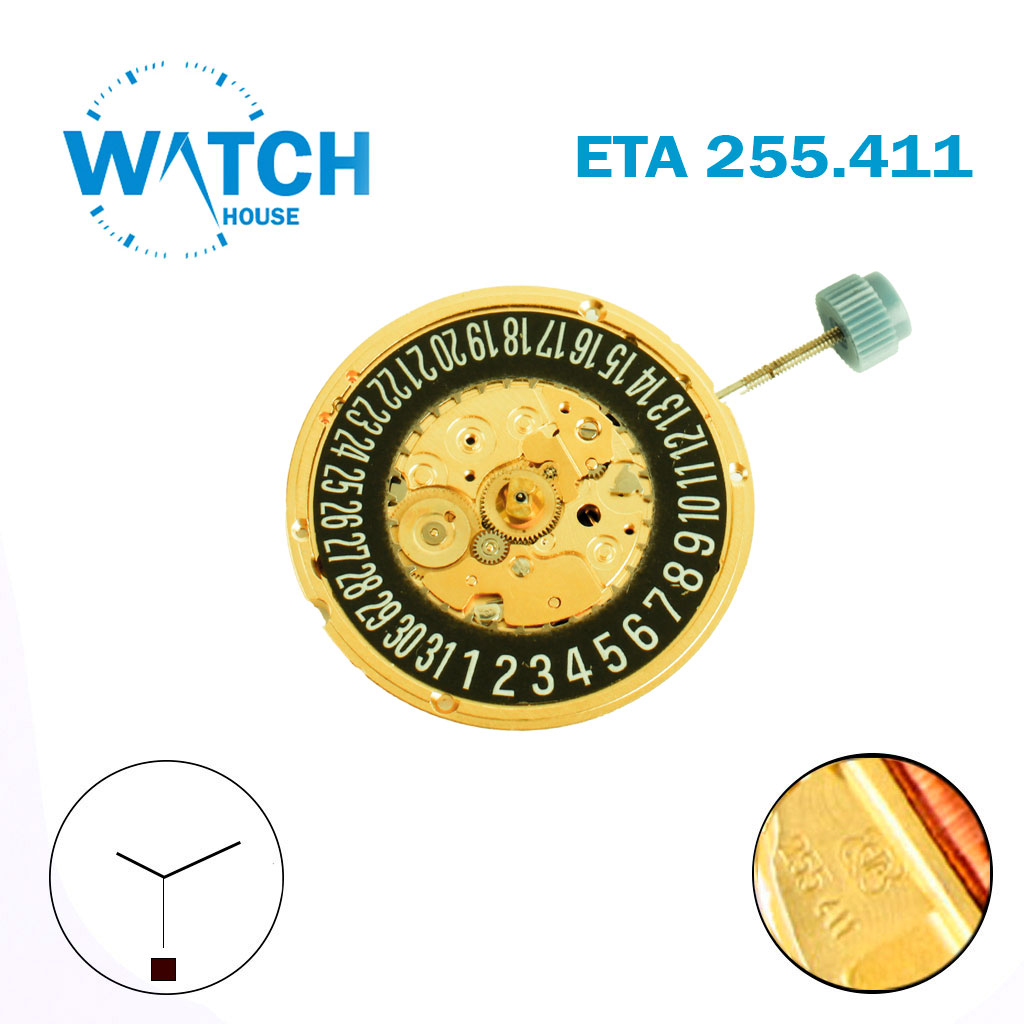 ETA 255.411 Swiss Quartz Watch Movement | 3 Hands | Black Date Disk at 6