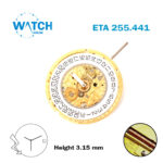 ETA 255.441 Swiss Quartz Movement | 3 Hands | White Date Disk At 3, Height 3.15 mm