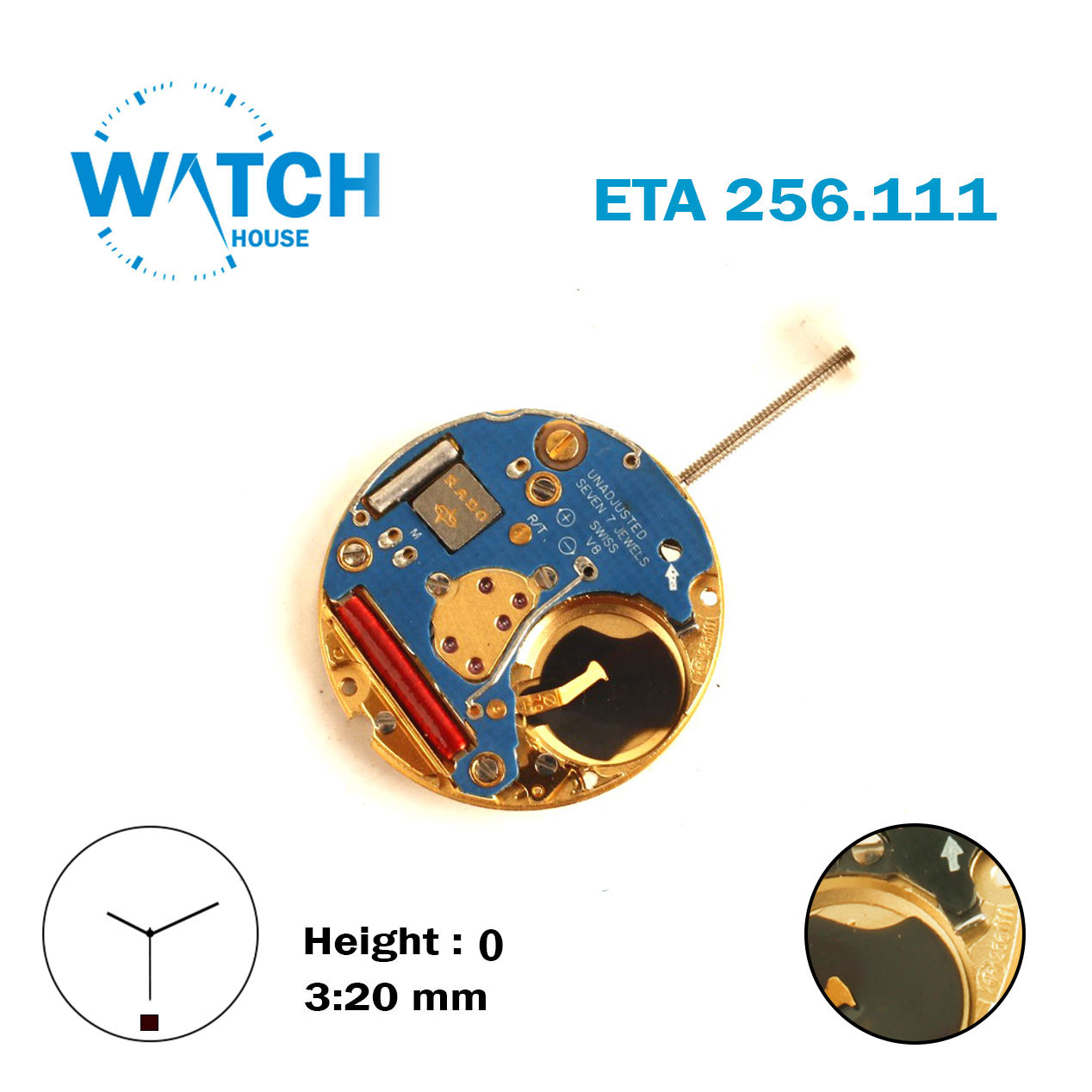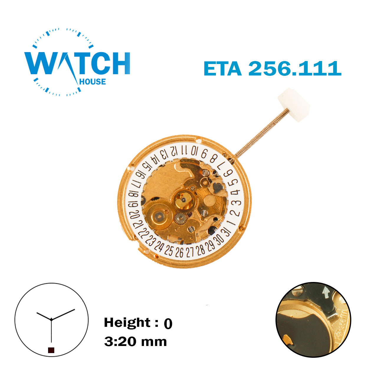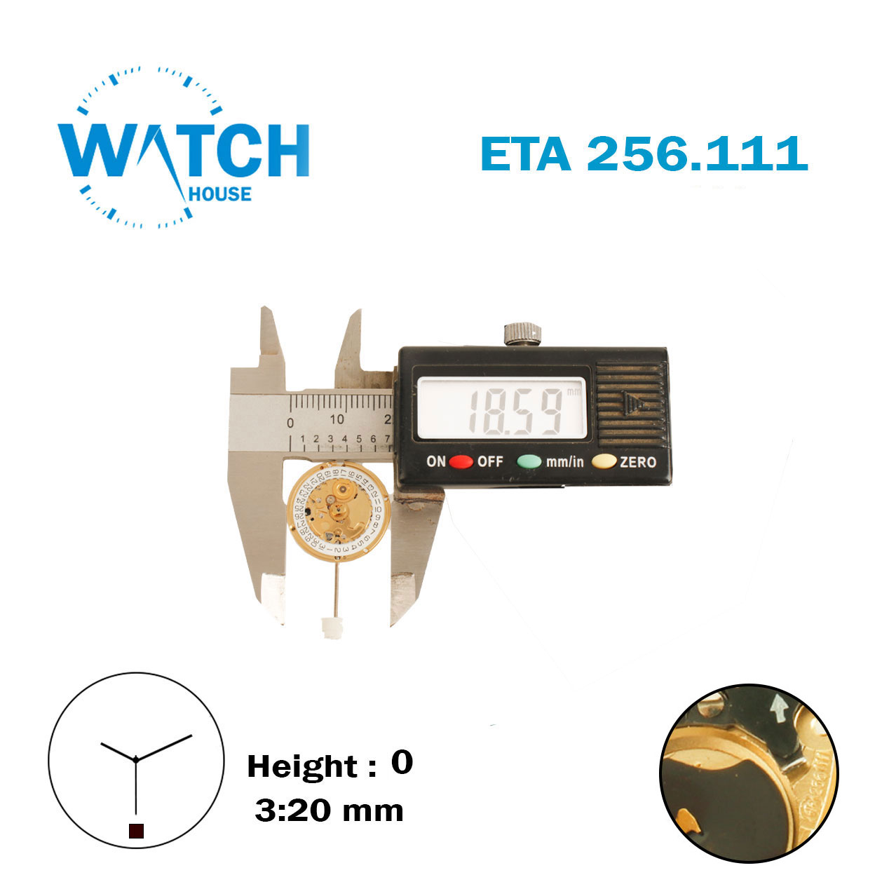 RADO ETA 256.111 Swiss Watch Movement, White Date Disk at 6, 3 Hands, Height 0