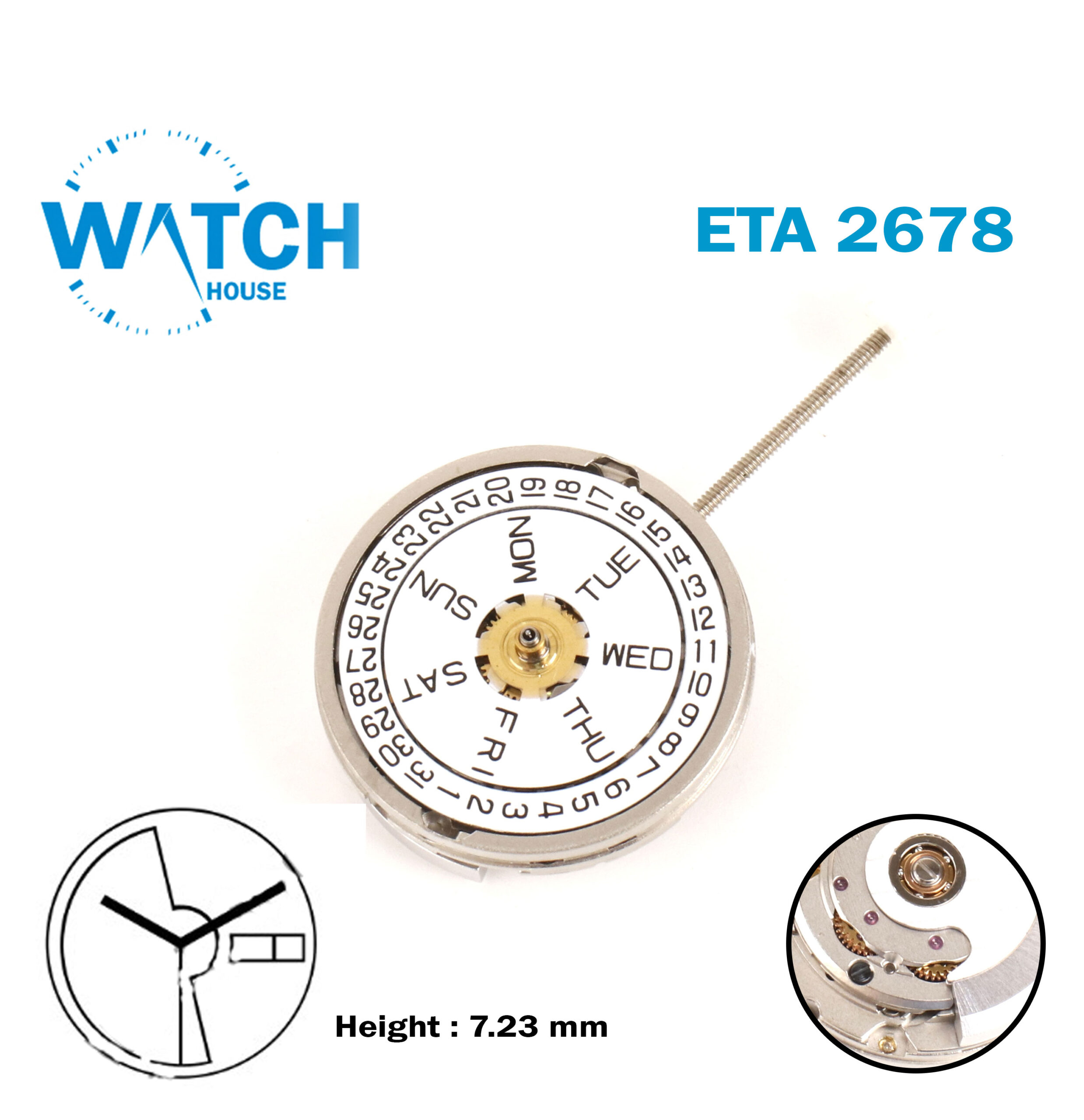 Be the first to review “ETA 2678 Swiss Automatic Movement, 3 Hands, White Day Date Disk AT 3.”