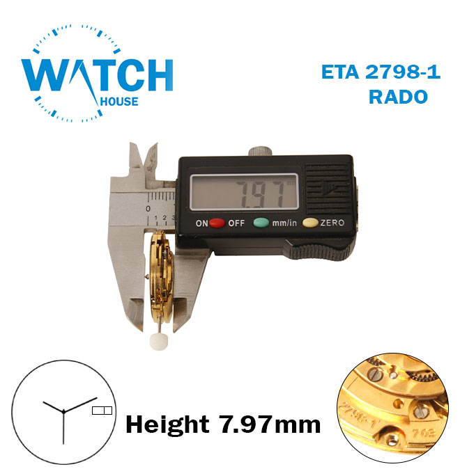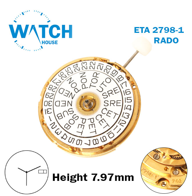 ETA 2798-1-RADO-Swiss Automatic Movement-White Slavic Day/Date Disk At 3-3 Hands, Height 7.97mm.