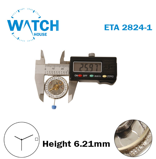 ETA 2824-1 FORTIS Swiss Movement, White Date Disk At 3, 3Hands, H:6.21mm