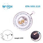 ETA 555.115 Swiss Made Quartz Movement, White Date Disk at 3, 3 Hands, Height 0.