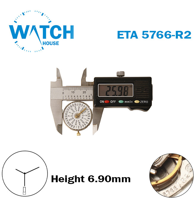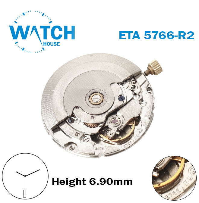 ETA 5766-R2 Swiss Automatic Movement-White Day/ Date Disk At 6-3 Hands-Height 6.90mm.