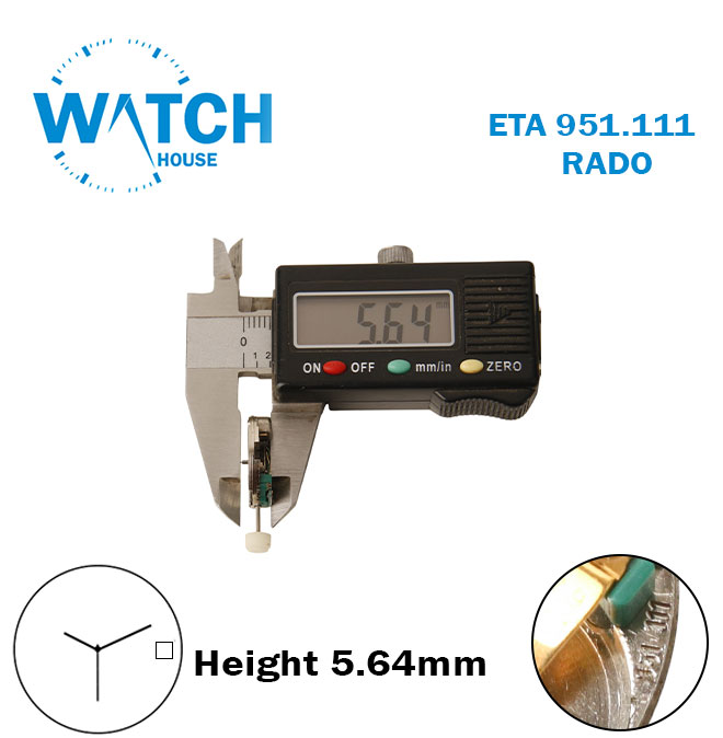 ETA 951.111 RADO Swiss Made Quartz Movement, White Date Disk at 3, 3 Hands, Height 5.64mm.