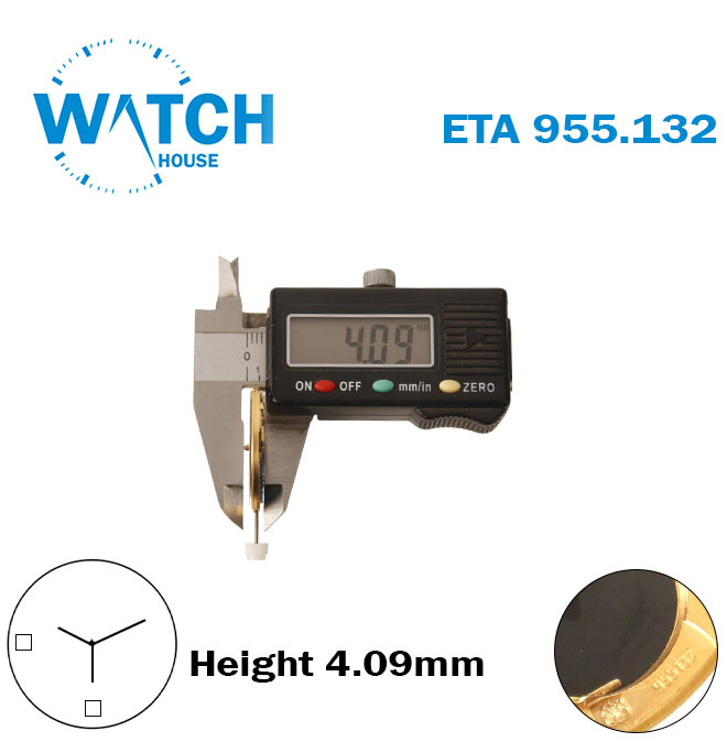 ETA 955.132 Swiss Movement-White Day At 6 & Date Disk At 9, Height 4.09mm, 3 Hands.