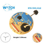 ETA 955.412 Swiss Made Quartz Movement, White Date Disk At 12, 3 Hands, Height 3:90 mm.