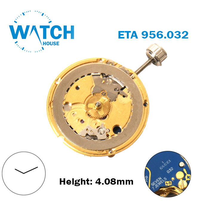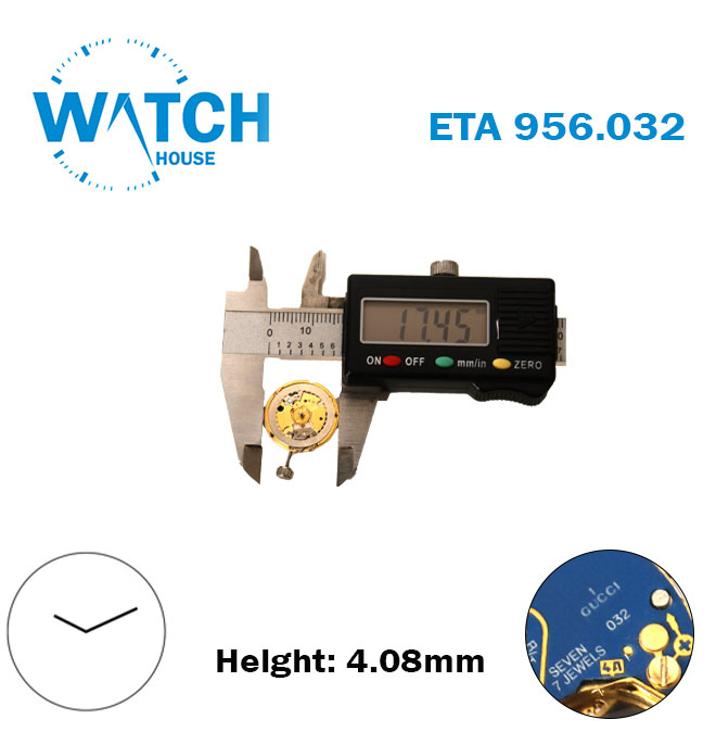 ETA 956.032 Gucci Swiss Made Quartz Watch Movement, Without Disk, 2 Hands., Height 4.08mm