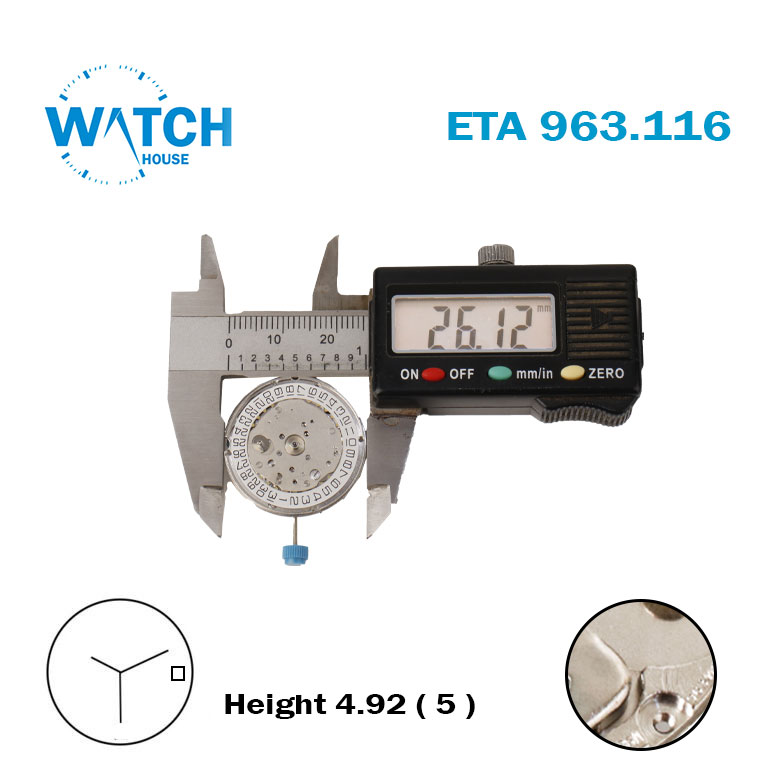 ETA 963.116 Or 963.114 Or 963.113 Swiss Made Quartz Movement, White Date Disk At 3, 3 Hands.