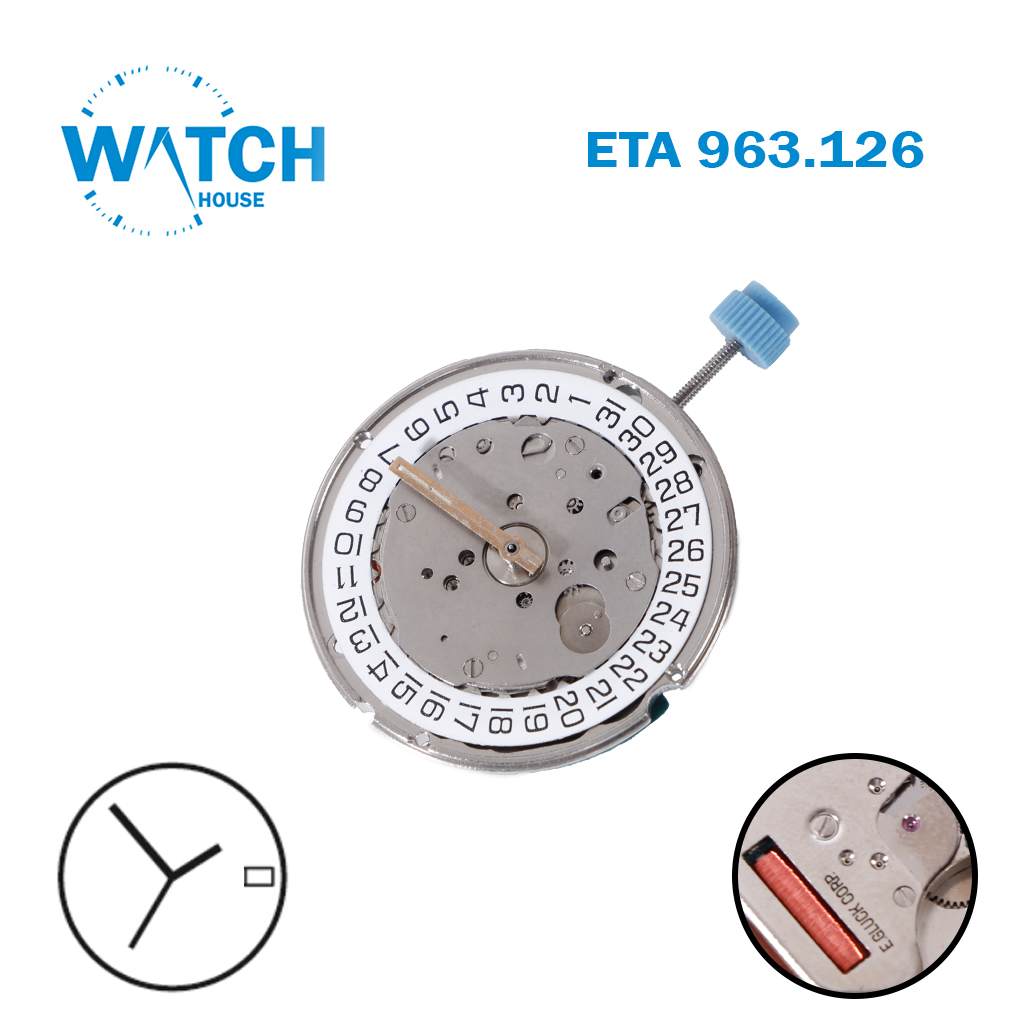 ETA 963.126 Swiss Made Quartz Watch Movement, White Date Disk At 3, 3 Hands.