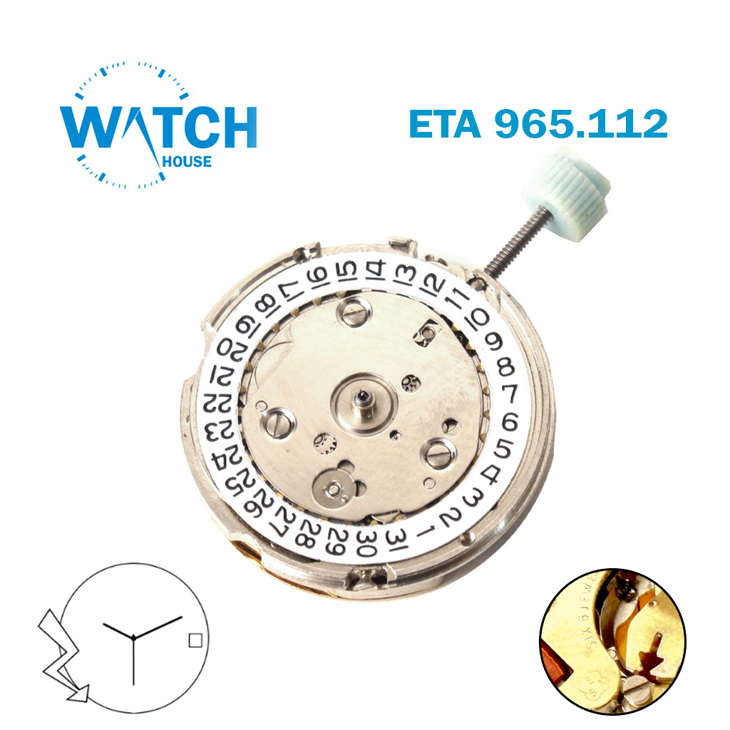 ETA 965.112 Swiss Made Watch Movement, White Date Disk at 3 ,3 Hands, Gold Color