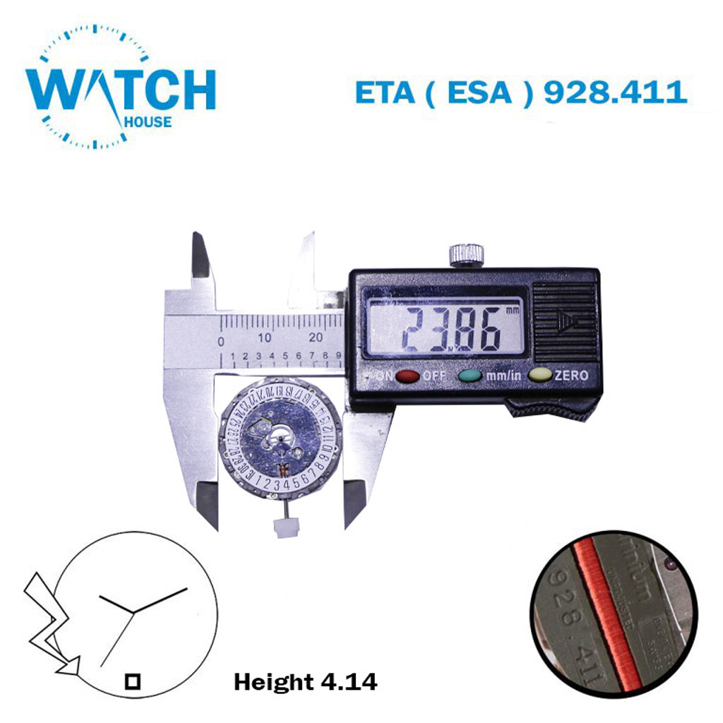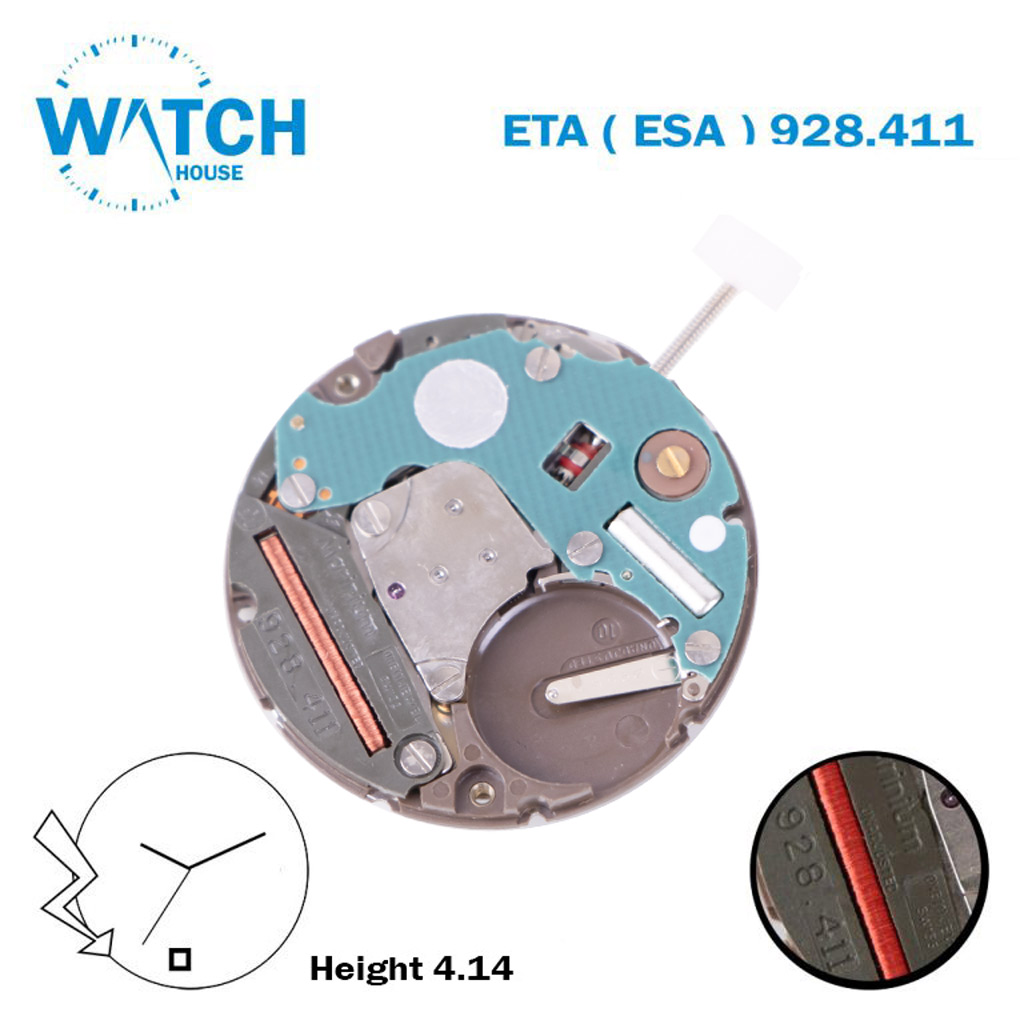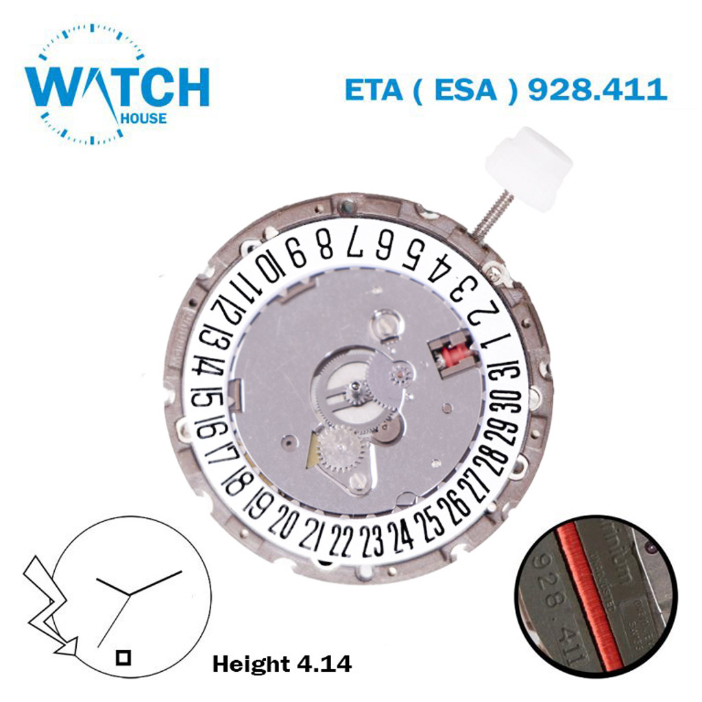 ETA (ESA) 928.411 Swiss Made Quartz Movement, White Date Disk At 6, 3 Hands, Without Hour Wheel.
