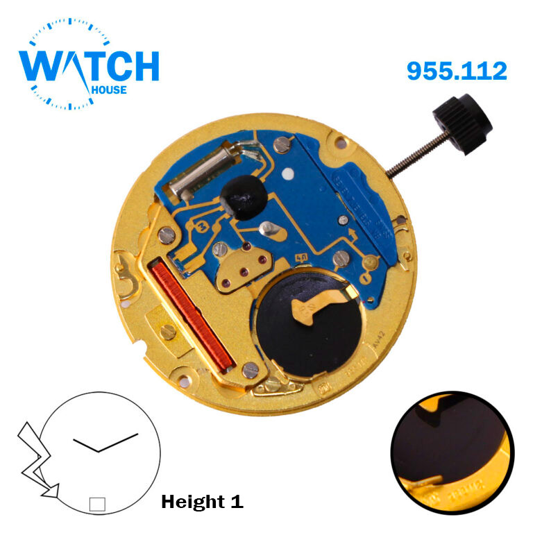 ETA 955.112 Swiss Made Watch Movement, Black Disk at 6, 2 Hands, Height 1.